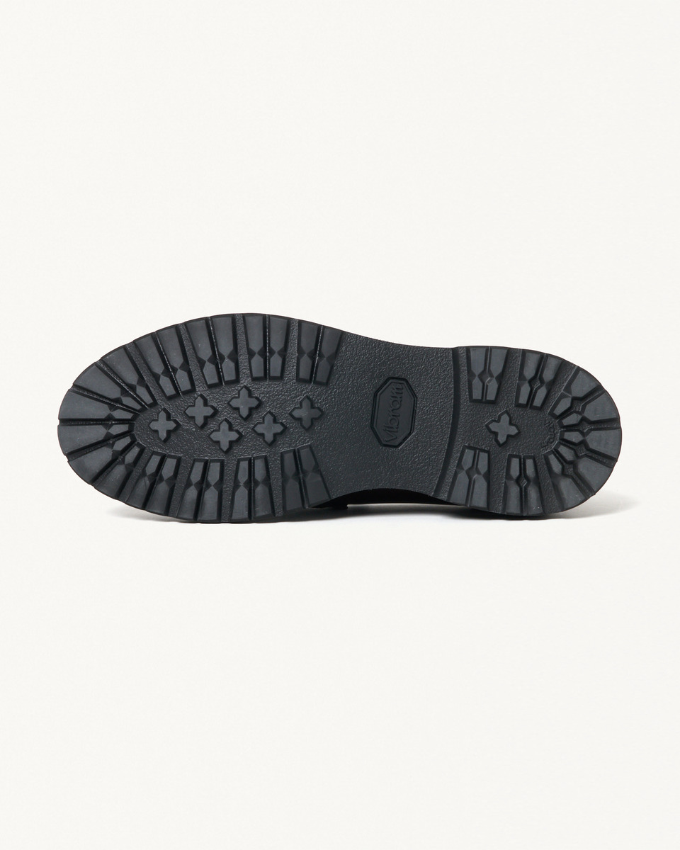 製法にはグッドイヤーウェルト製法を採用し、Lストーム型のウエルトによるダブル仕立てで重厚感のある佇まいを構築。ソールには、軽量性・グリップ力・耐摩耗性のバランスに優れたVIBRAM社製EVAソールを組み合わせ、見た目のボリューム感と実用性を高次元で両立しています。