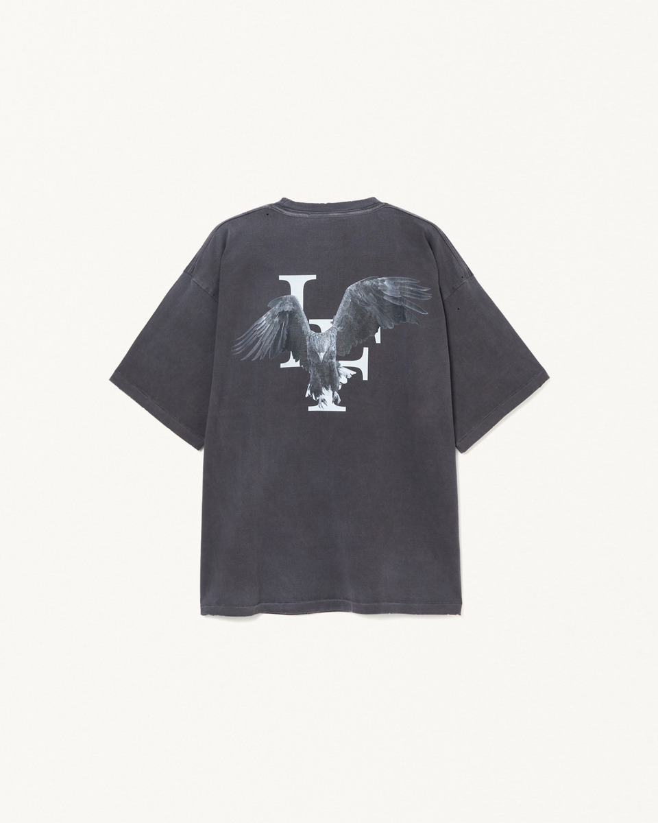 ブランドアイコンのイーグルグラフィックとコラボレーションイニシャルロゴの『LF』をあしらったヴィンテージライクなTシャツ。