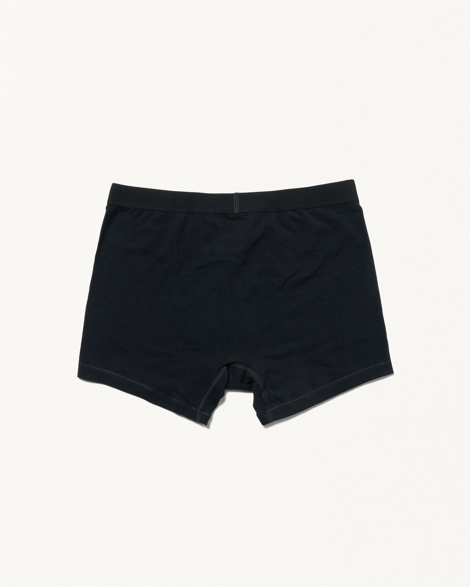 コラボレーションのダブルネームをあしらったシンプルなデザインのメンズボクサーパンツ。